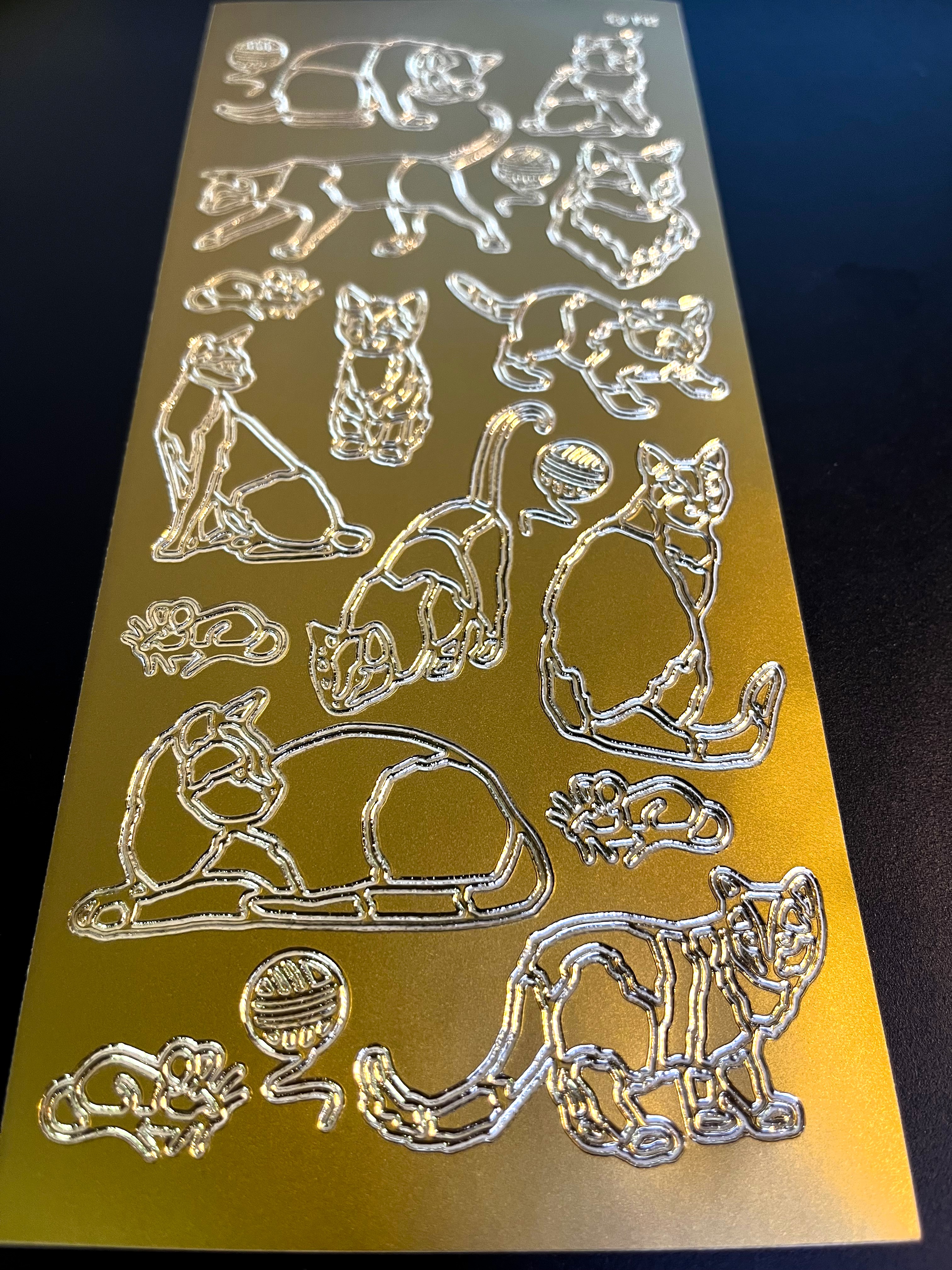 Obrysové samolepky 5ks, 10x23 cm - kočky, zlaté