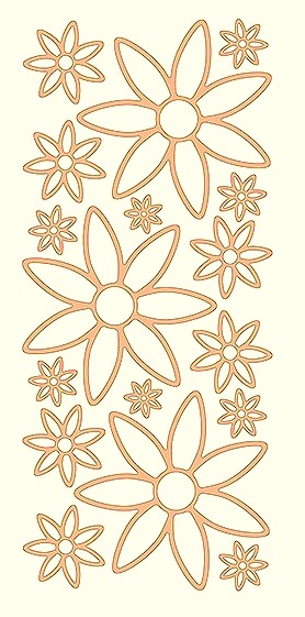 Obrysové samolepky 5ks, 10x23 cm - květy zlaté