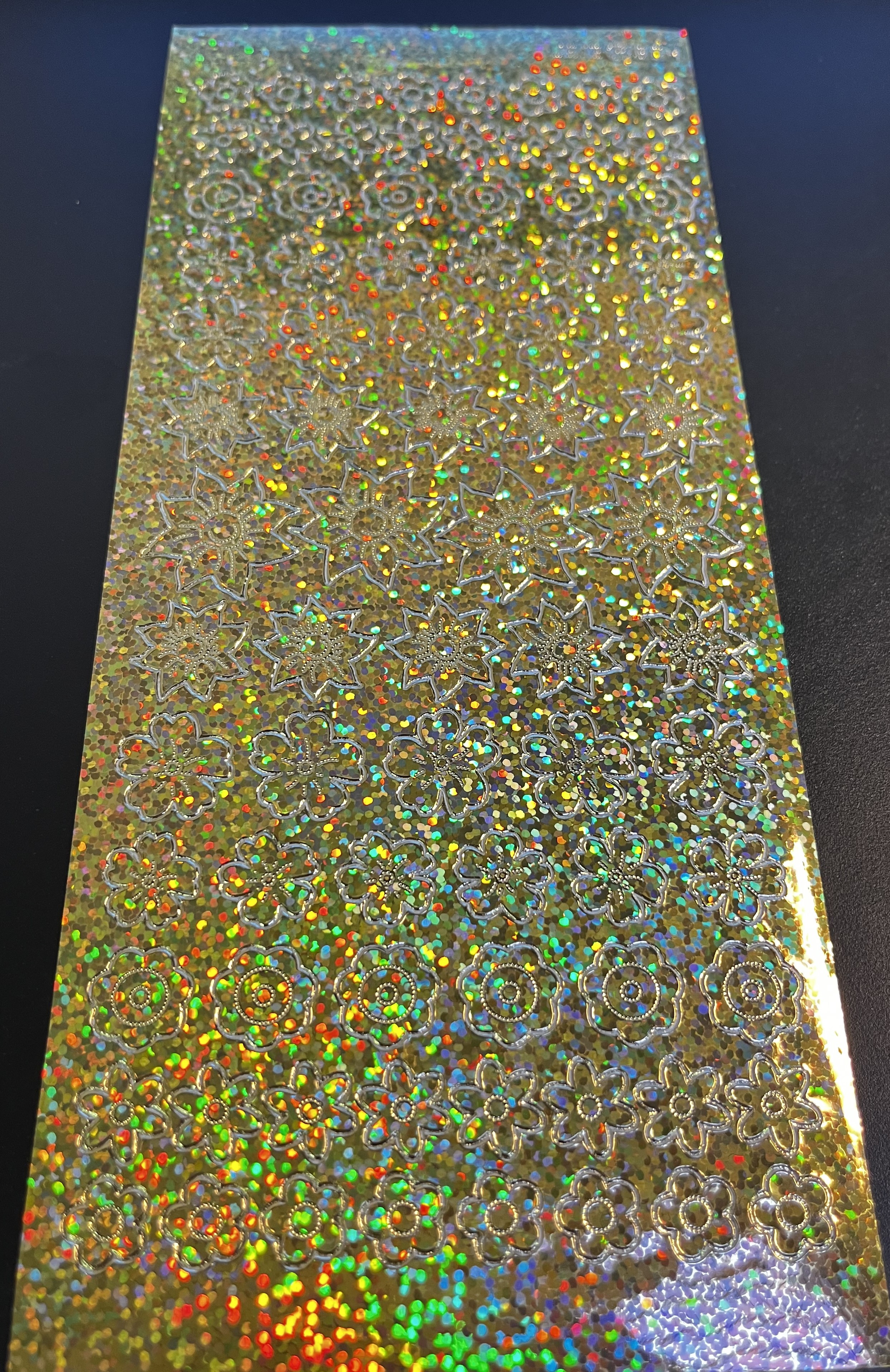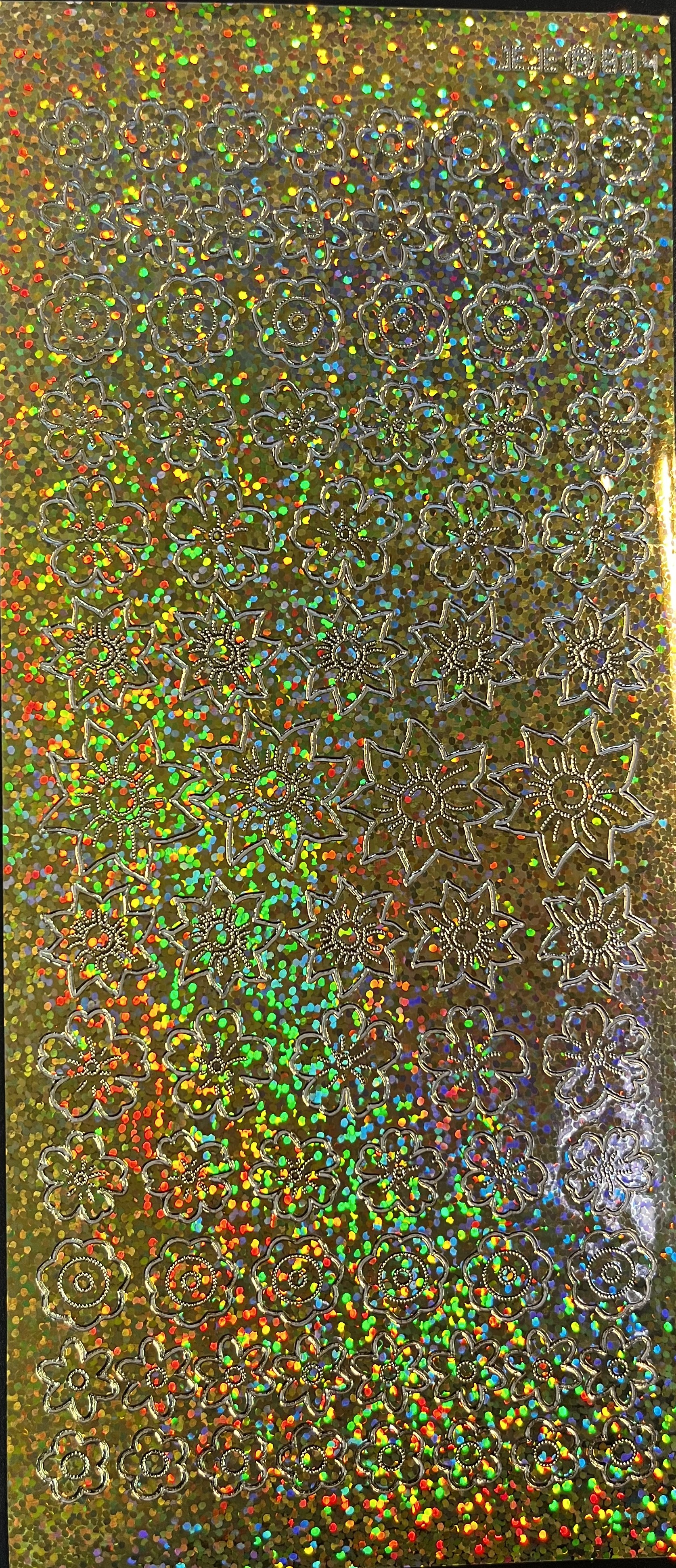 Obrysové samolepky 5ks, 10x23 cm - květy zlaté, hologram