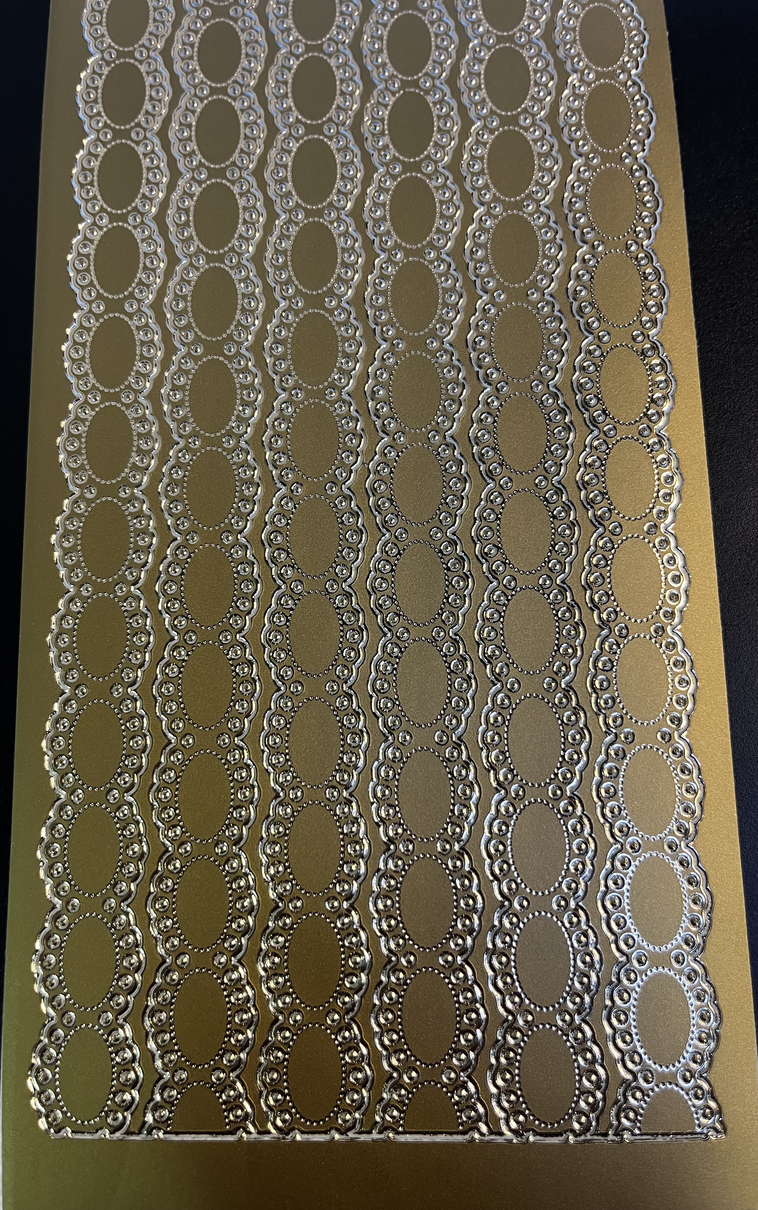 Obrysové samolepky 5ks, 10x23 cm - oválky bordura, zlaté