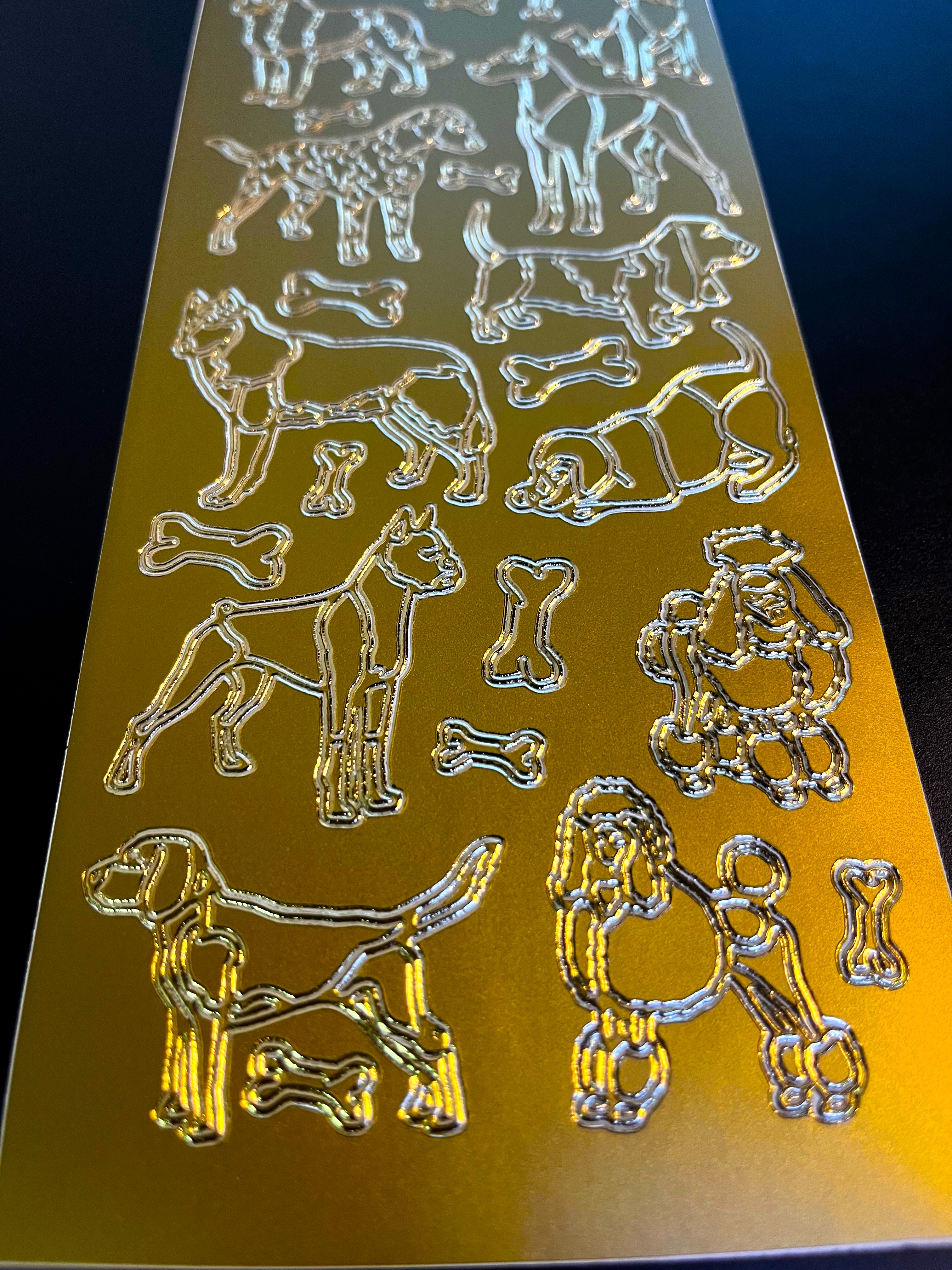 Obrysové samolepky 5ks, 10x23 cm - psi, zlaté